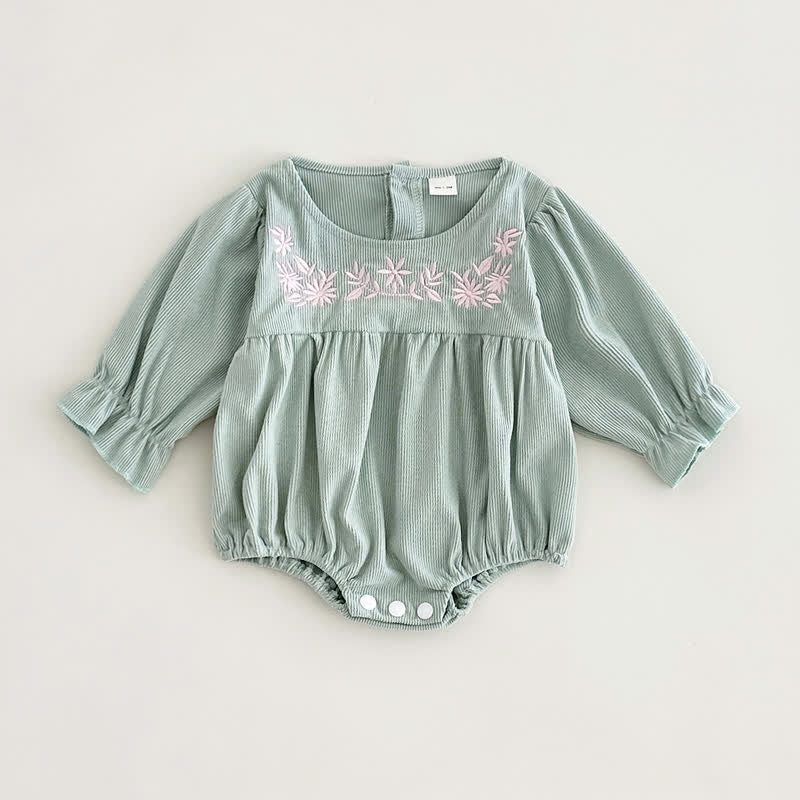 Baby Floral Corduroy Green Bodysuit