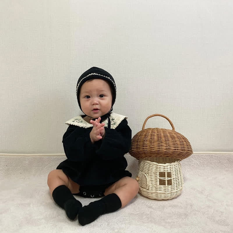 Baby Floral Collar Corduroy Black Bodysuit