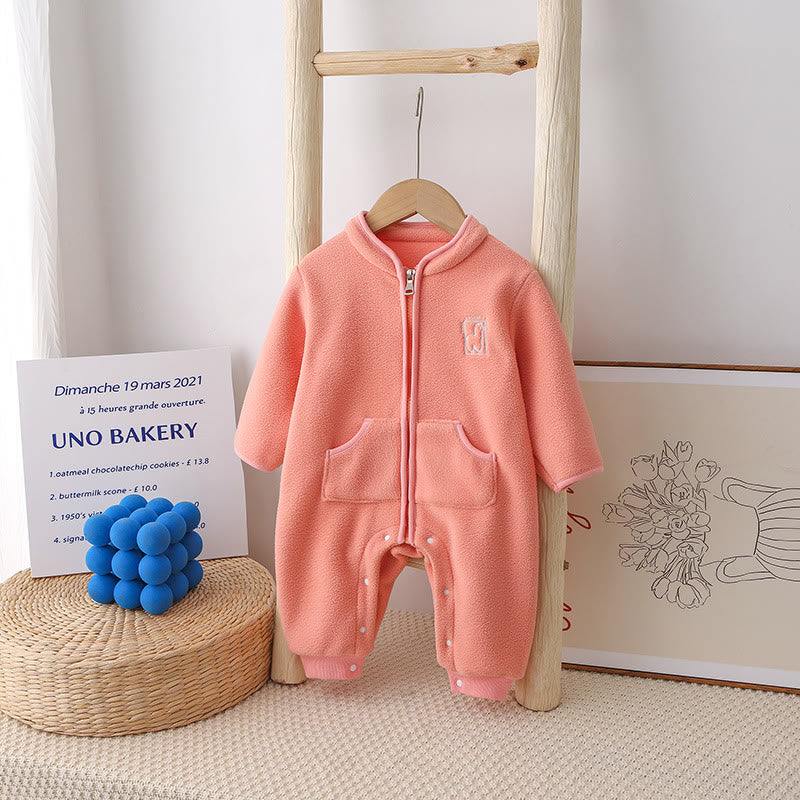 Baby Fleece Solid Color Alpaca Romper