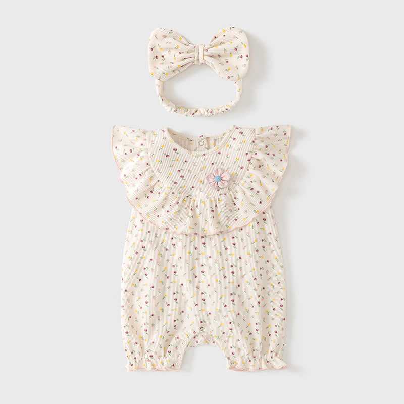 Baby Floral Flounce Romper with Headband