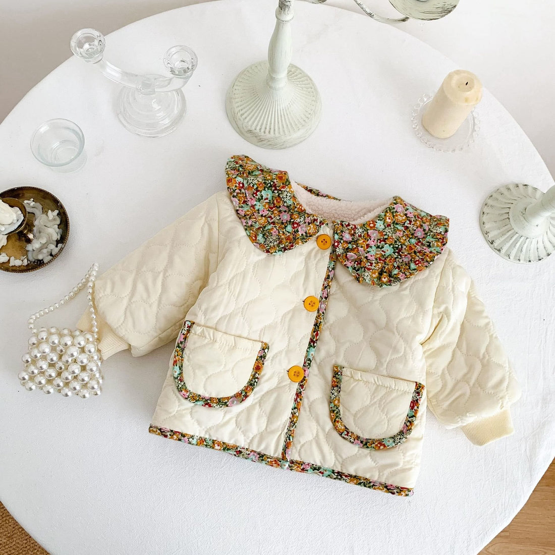 Baby Floral Collar Fleece Lined Coat