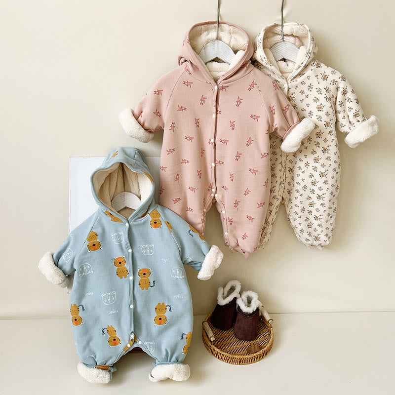 Baby Flower Bear Quilted Contrast Sleeves Romper