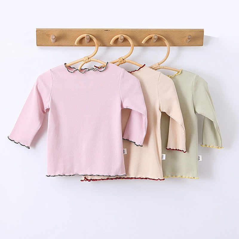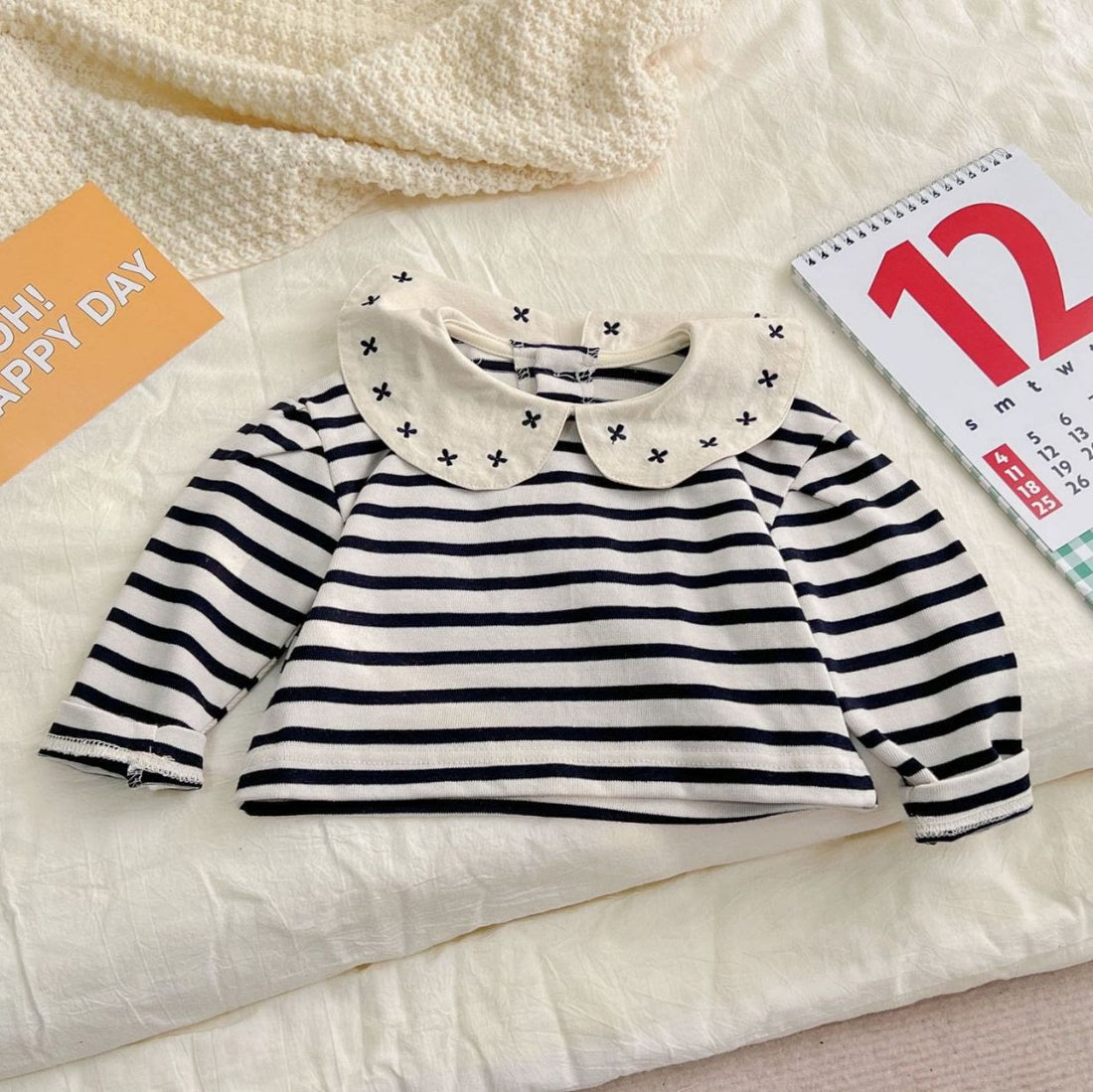 Baby Girl Lapels Embroidered Flower Striped Soft T-shirt