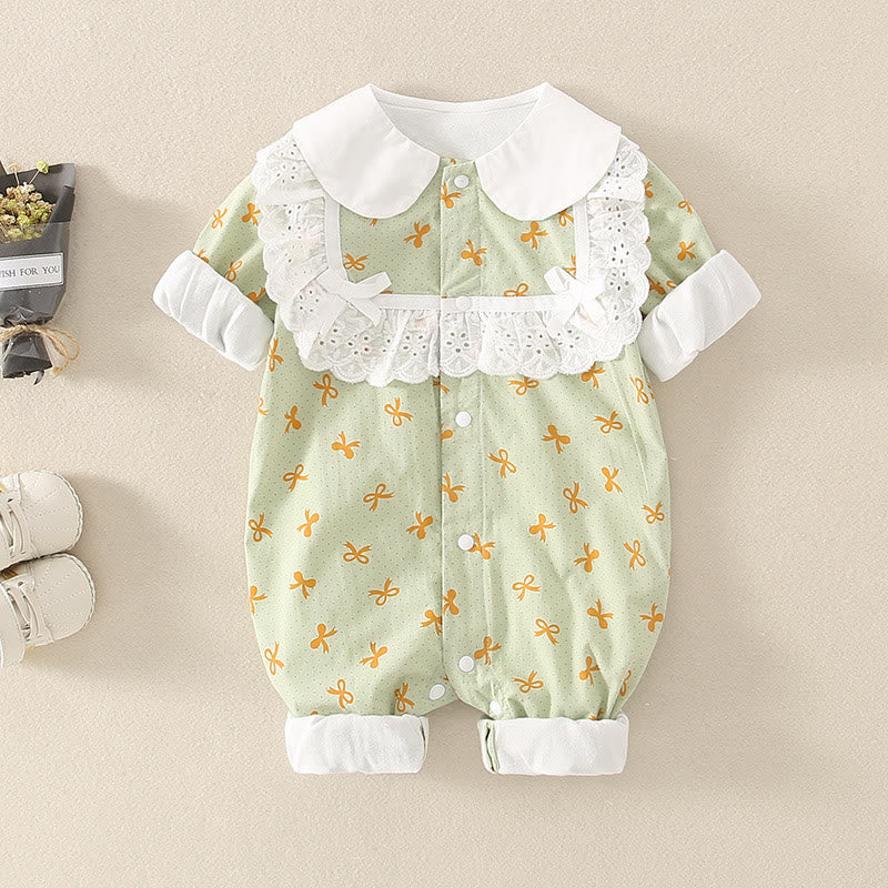 Baby Girl Lapels Embroidered Flower Bodysuit