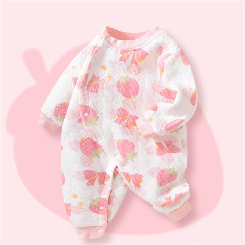 Baby Girl Strawberry Bow Pink Romper
