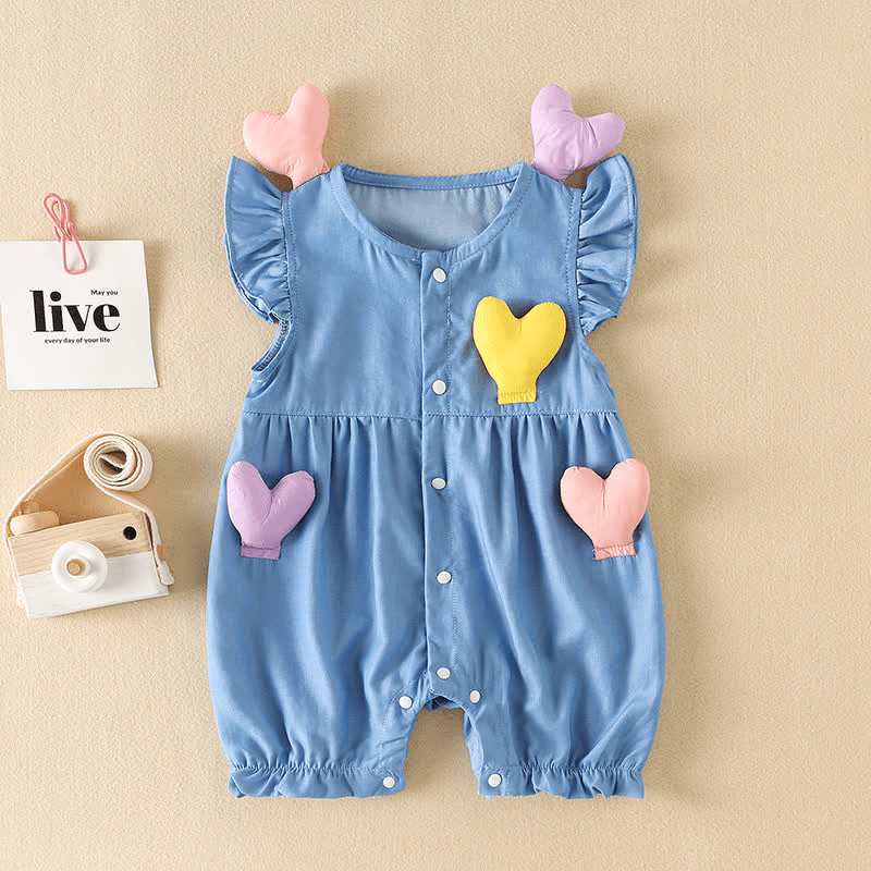 Baby Heart Ruffled Denim Romper