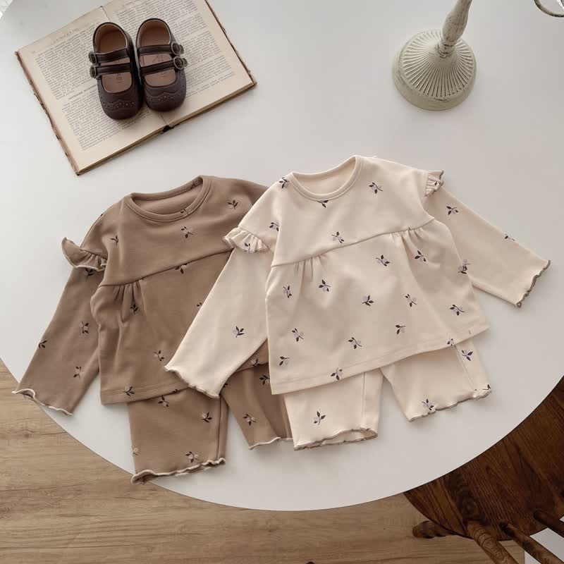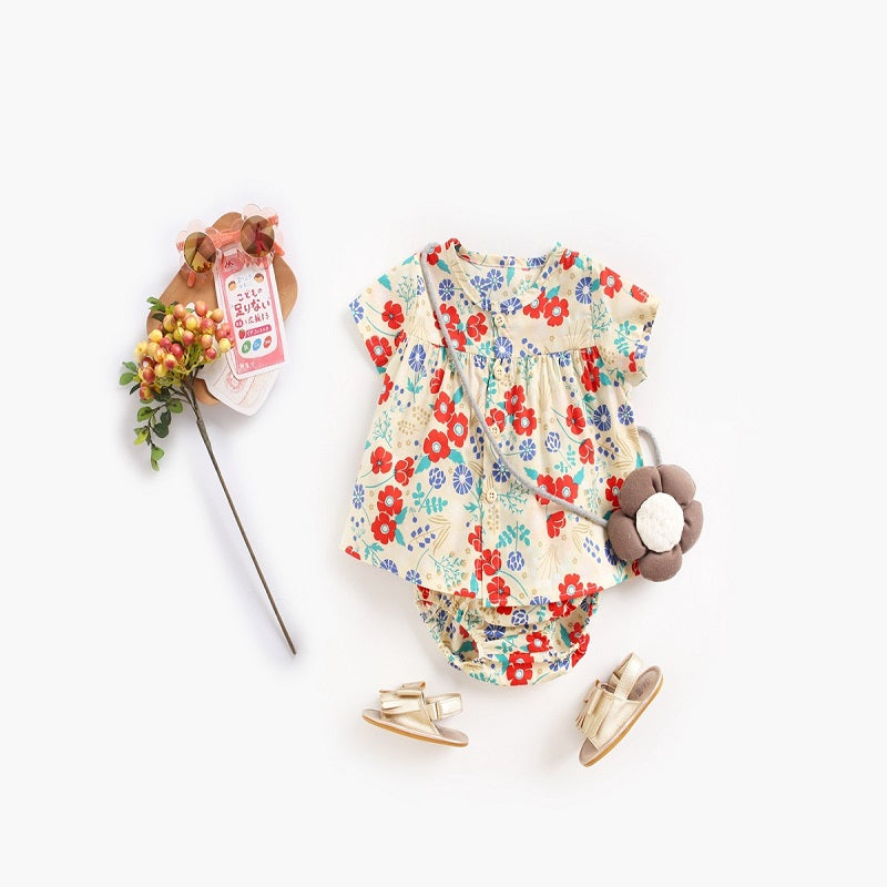 Baby Girl Apricot Floral Top & Bloomers 2-PCS Set
