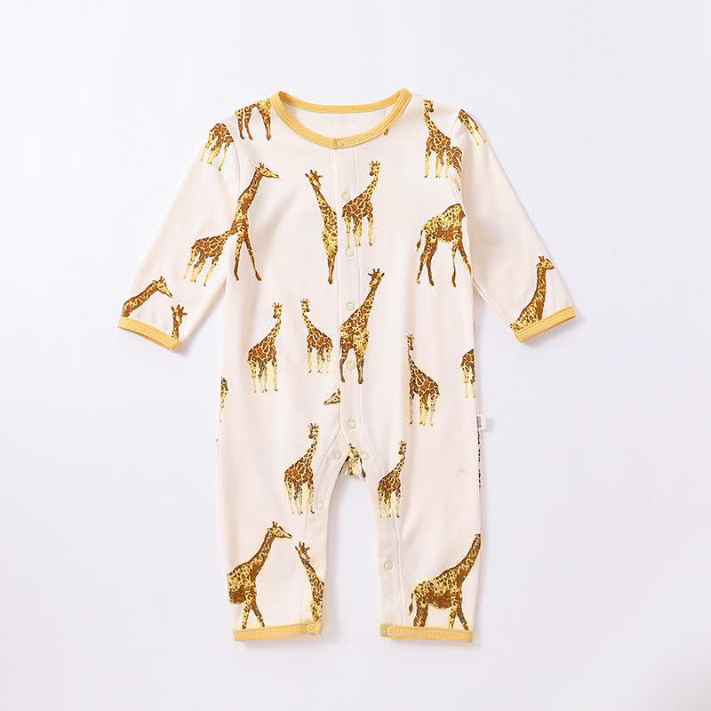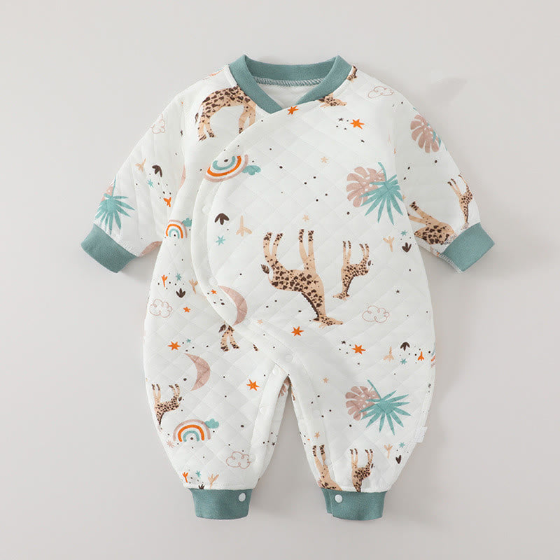 Baby Giraffe Leaf Rainbow Quilted Romper