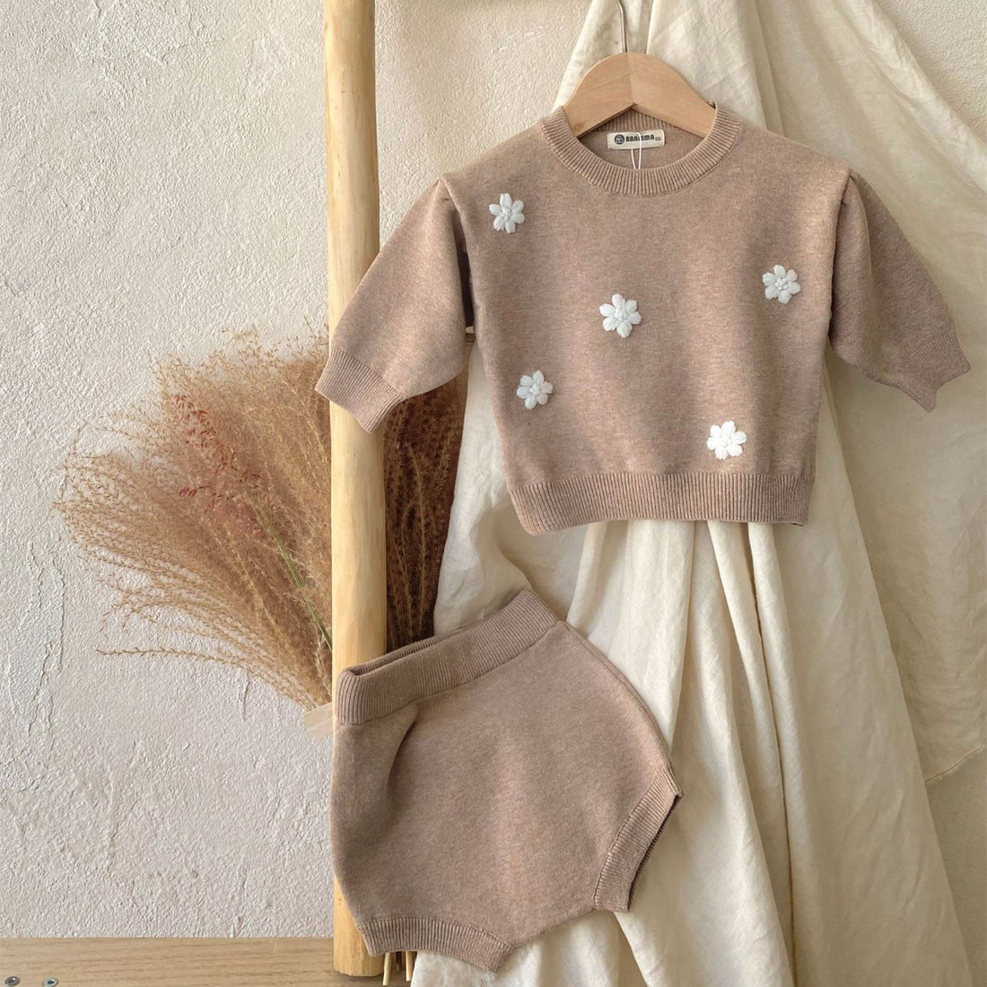 Baby Bear Smile Flower Sweatsuit 2 Pieces Set