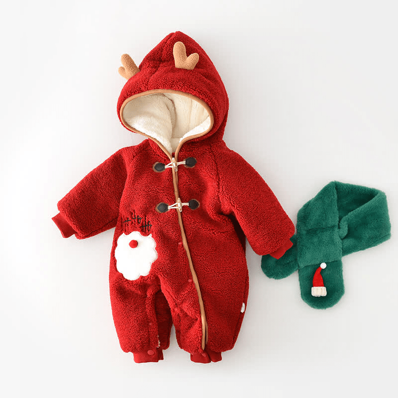 HO Baby Deer Fleece Lined Hooded Romper with Scarf
