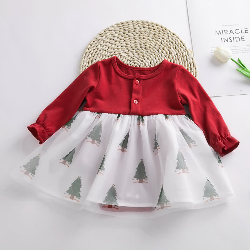 Baby Christmas Tree Tutu Skirted Bodysuit
