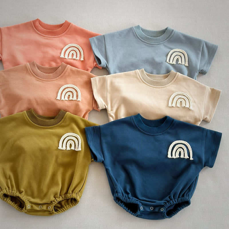 Product ID: BB49143Material: 95% CottonPattern: Rainbow, Star Size Chart Size (Age) Height (CM) Weight (KG) 0-3M 54-59...