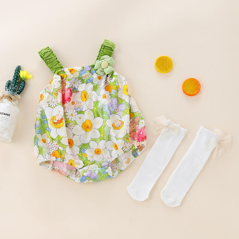 Baby Girl Colorful Bow Suspenders Bodysuit