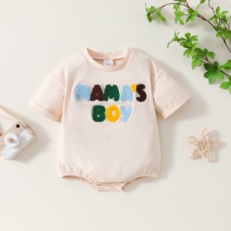 MAMA'S BOY Baby Embroidered Apricot Bodysuit