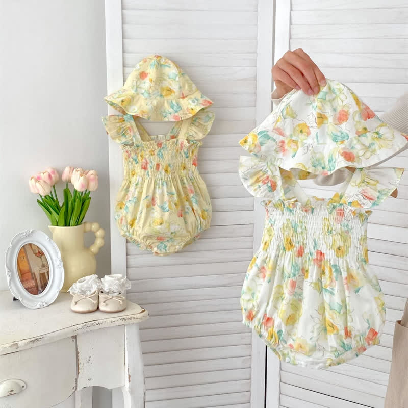 Baby Clean Flower Ruffled Bodysuit with Hat