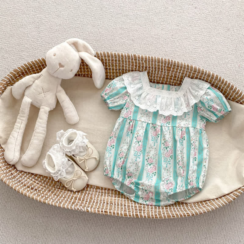 Baby Ruffle Sleeves Embroidered Flower Bodysuit