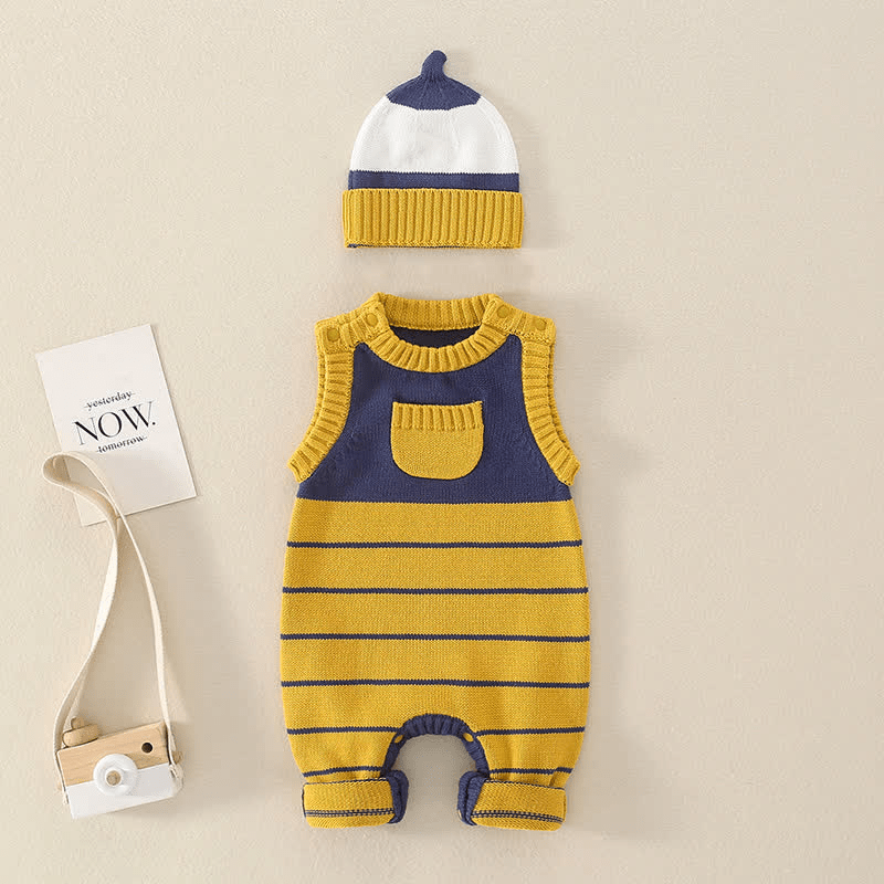 Baby Striped Sleeveless Newborn Romper with Bonnet