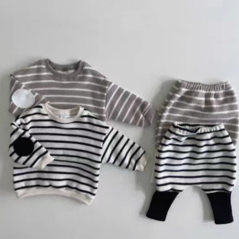 Baby 2-Piece Striped Patch Fleece Lined Set