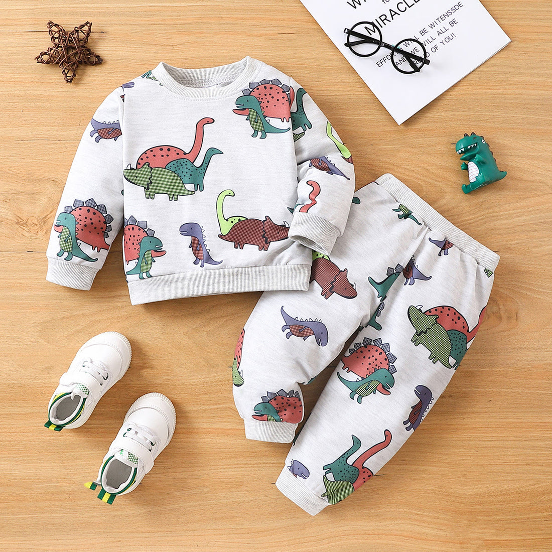 Baby Toddler Cartoon Dinosaur Sweatsuit 2 Pieces Set