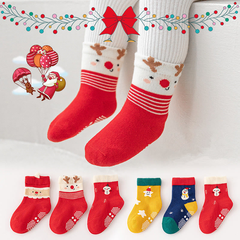 3 Pairs Baby Snowman Santa Claus Christmas Socks
