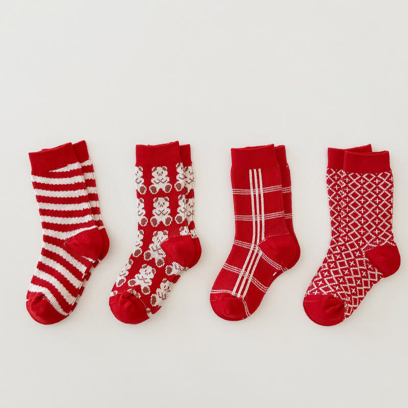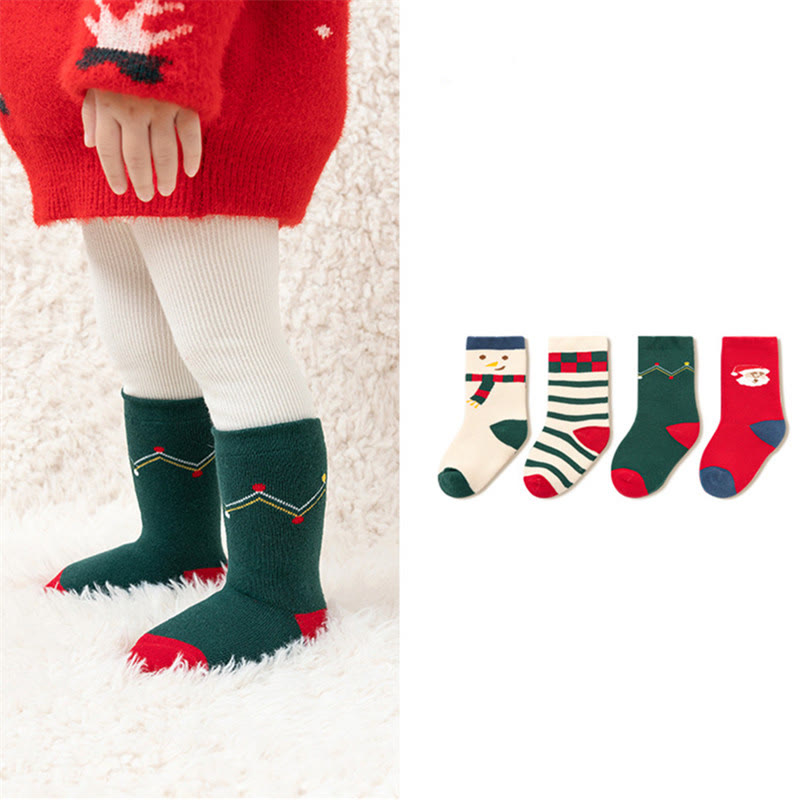 4 Pairs Baby Christmas Santa Claus Snow Man Striped Socks