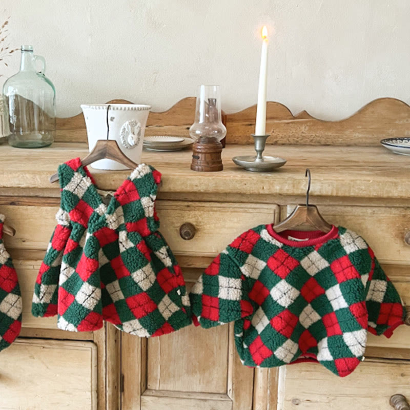 Baby Toddler Fleece Argyle Dress/Sweatshirt