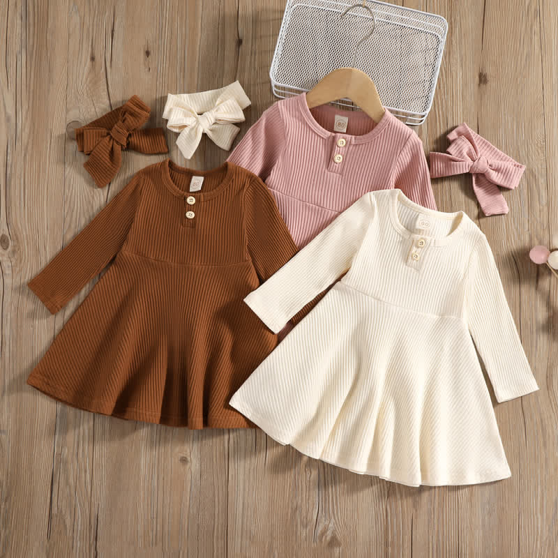 Baby Solid Color Ribbed Dress with Headband