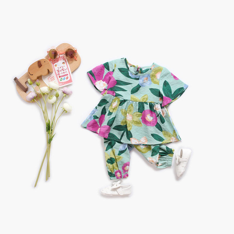 Baby Floral Green Dress & Pants Set