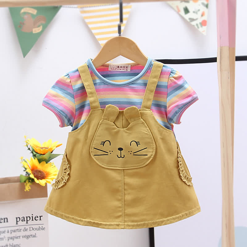 Baby Fake 2pcs Bunny Colorful Striped Dress