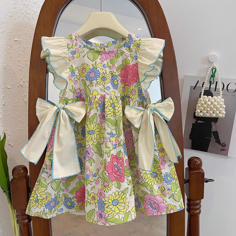 Toddler Girl Flower Ruffled Bows Dress