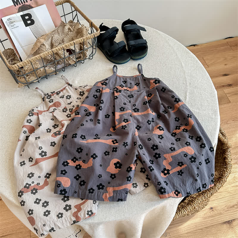 Toddler Girl Earthy Color Flower Overalls