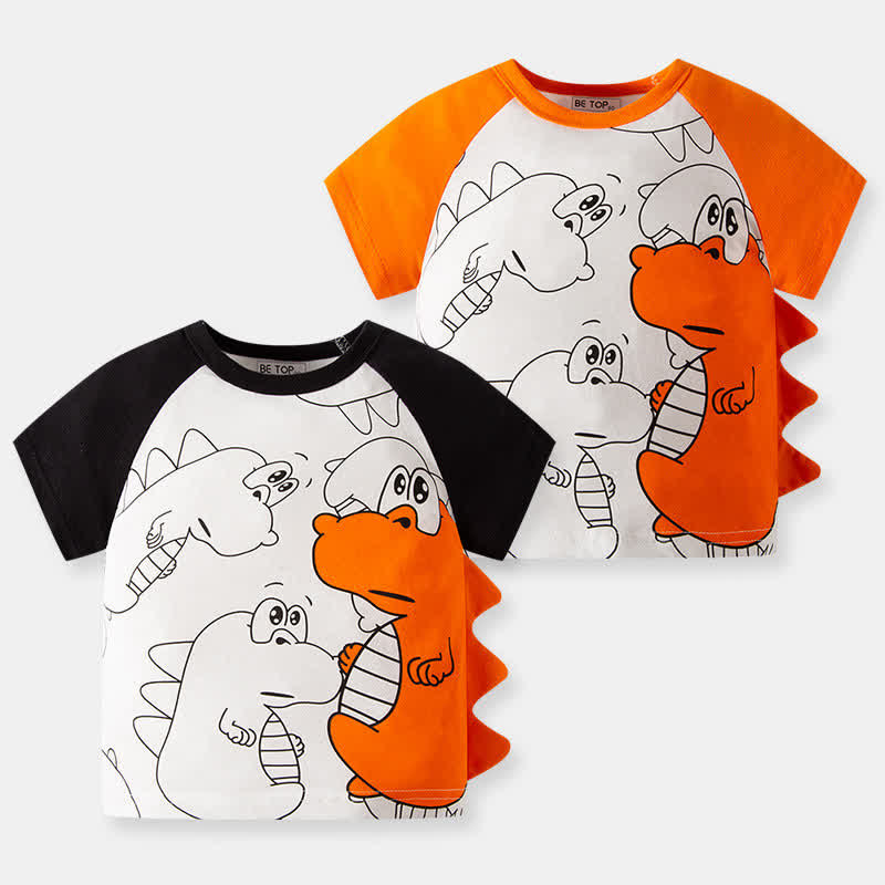 Toddler Boy Contrast Sleeves Dinosaur T-shirt