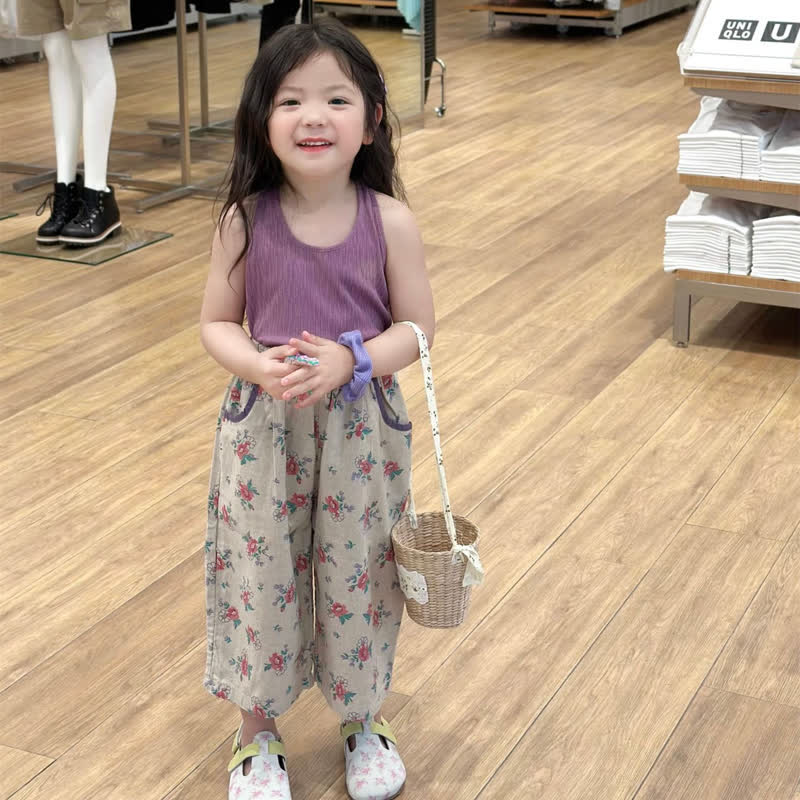 Toddler Girl Flower Multicolor Loose Pants