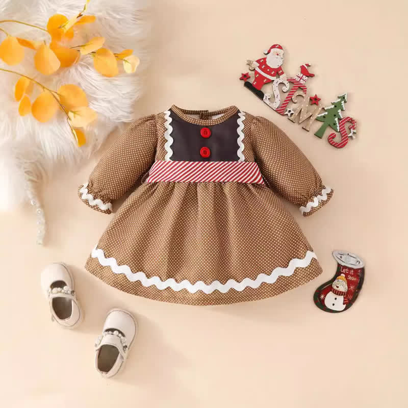 Baby Toddler Gingerbread Man Brown Dots Dress