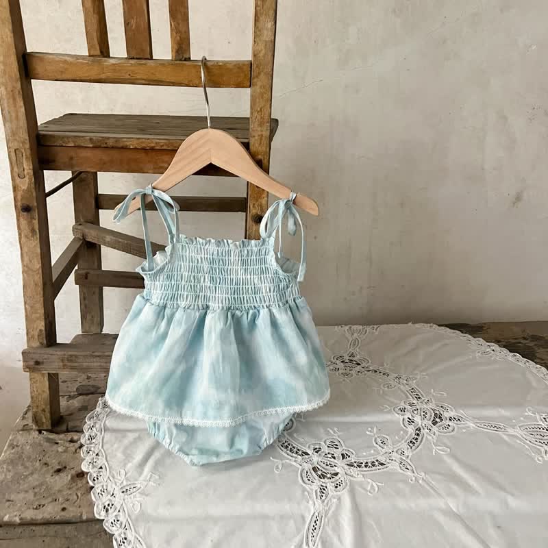 Baby Sweet Lace Blue Suspenders Bodysuit