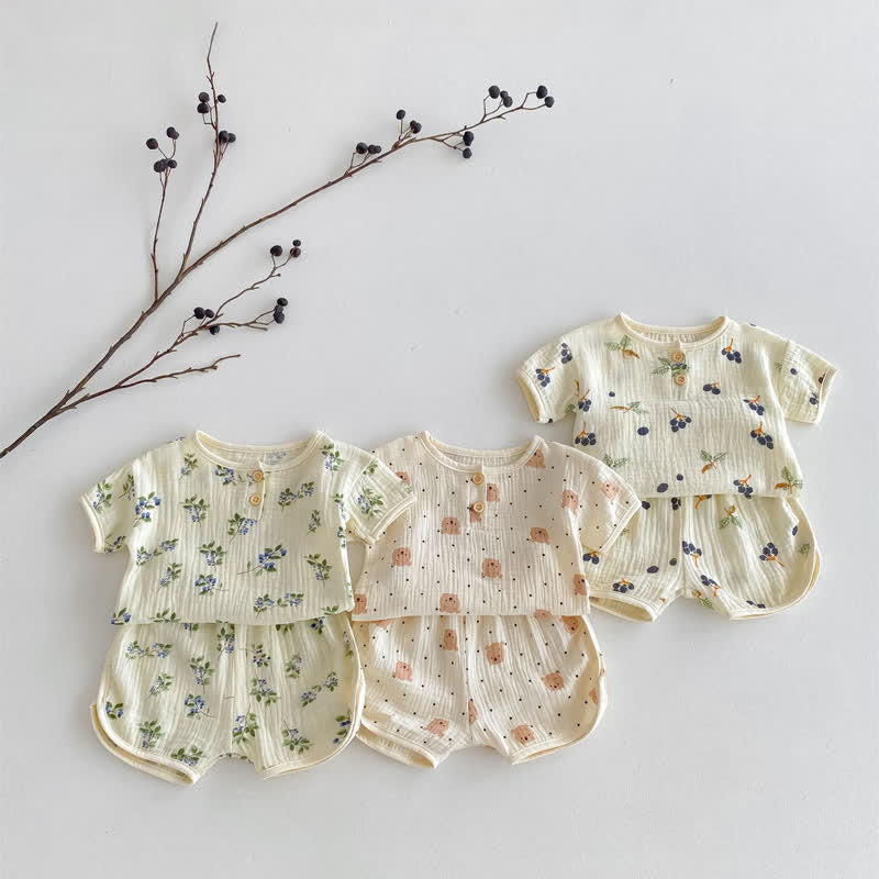 Product ID: BB49029Material: 95% CottonPattern: Bear, Blueberry, Flower Size Chart Size (Age) Height (CM) Chest (CM)...
