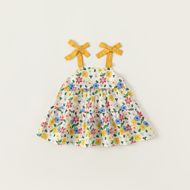 Baby Yellow Floral Bow Suspenders Sweet Dress