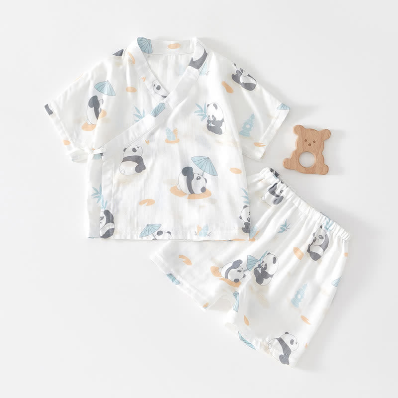Baby 2-Piece Bamboo Panda Kimono White Set