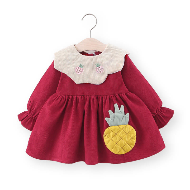 Toddler Girl Lapels Corduroy Pineapple Dress