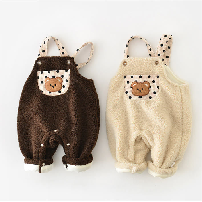 Baby Cartoon Bear Dots Cute Fleece Overalls