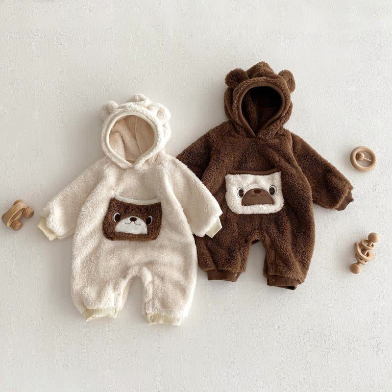 Baby Cute Bear Plush Hooded Romper