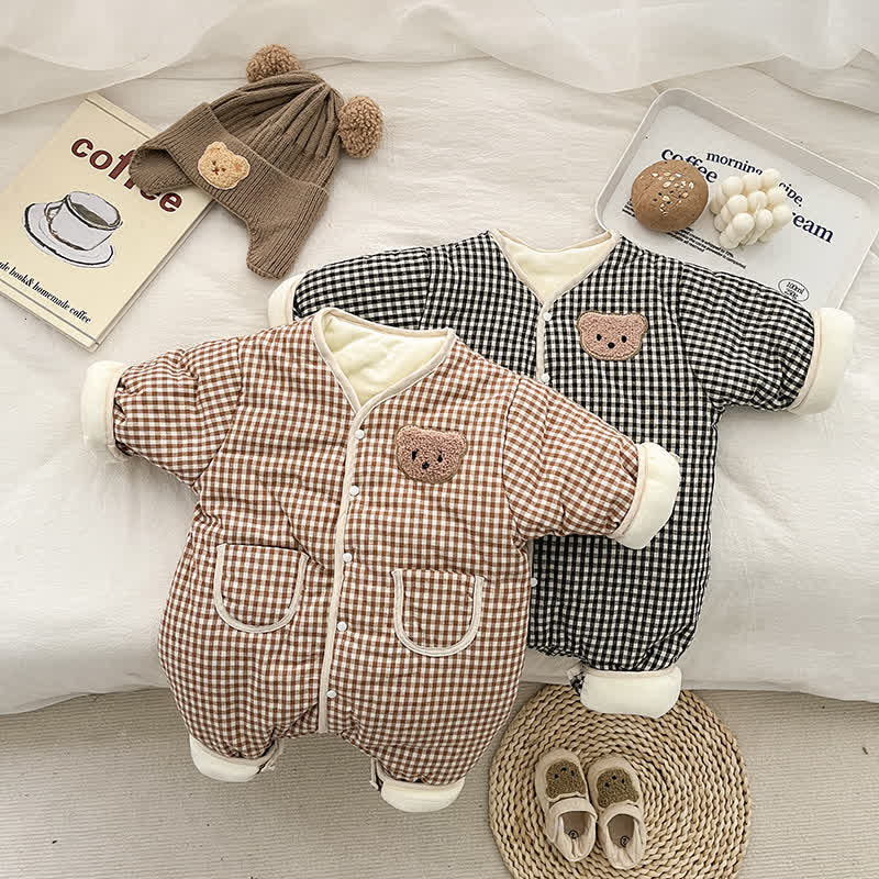 Baby Bear Plaid Cotton Padded Romper