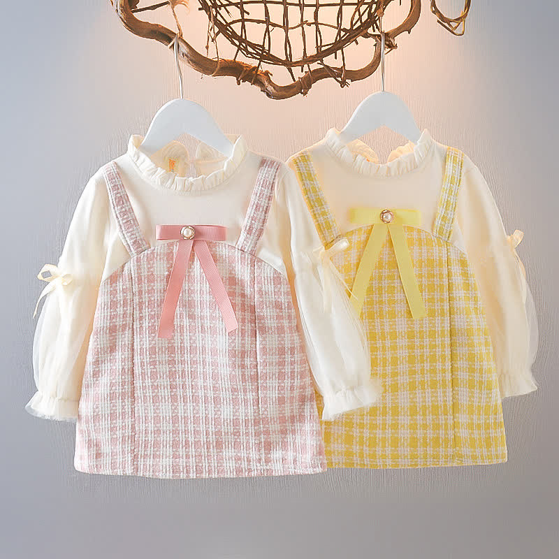 Baby Fake 2Pcs Bow Plaid Sweet Dress