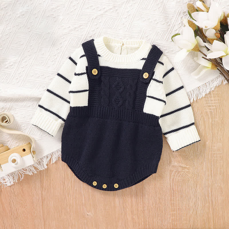 Baby Striped Knitted Fake 2pcs Bodysuit