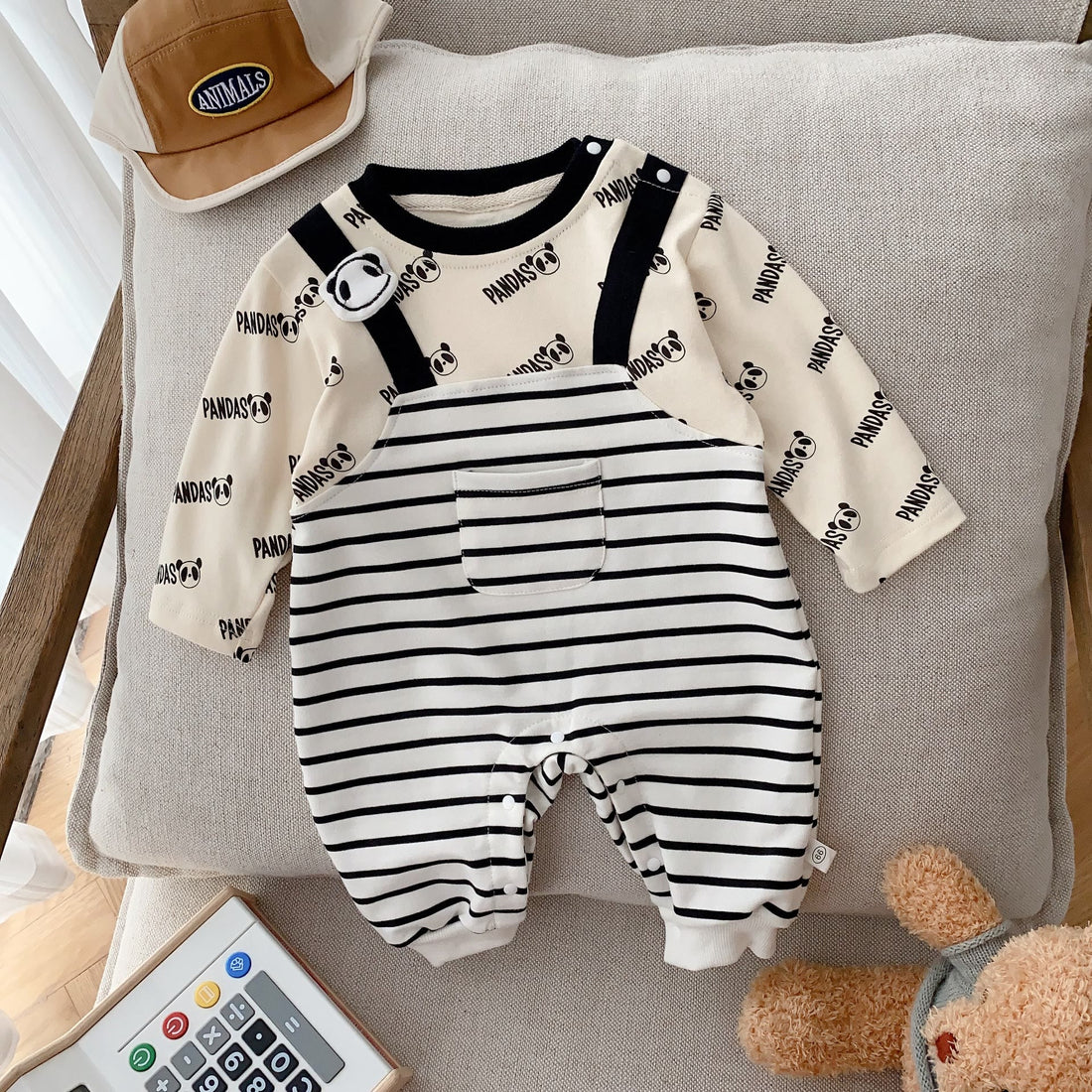 PANDAS Baby Striped Fake 2 Pieces Romper