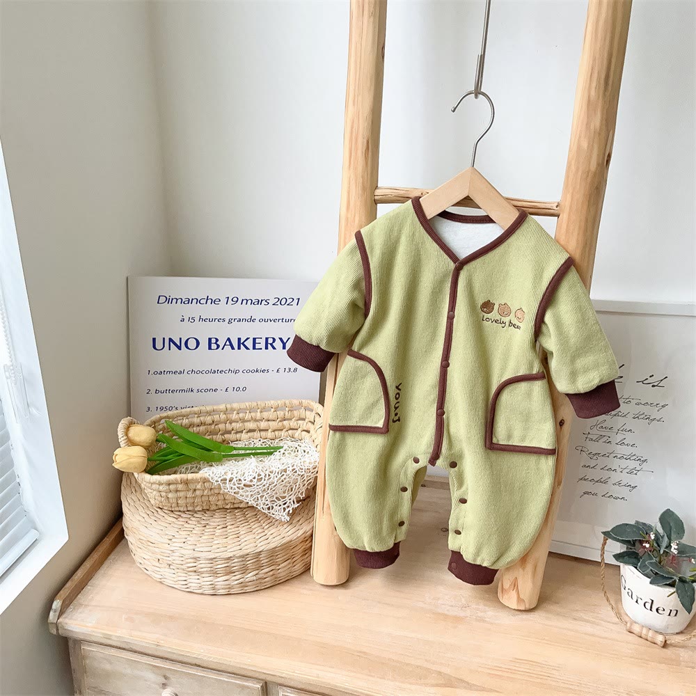 LOVELY BEAR Baby Button Embroidered Three Bear Romper