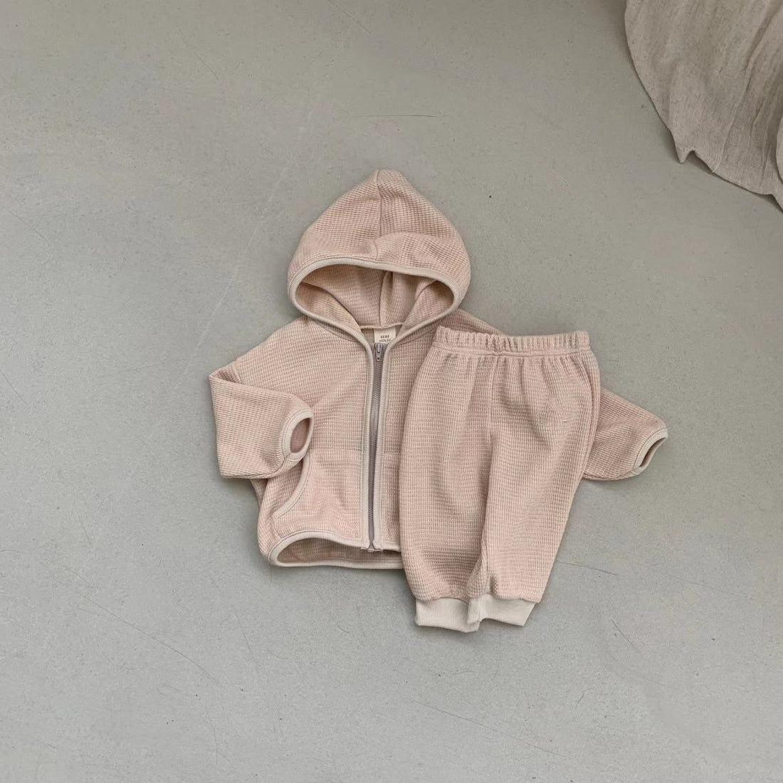 Baby Casual Solid Color Hooded Sweatsuit 2 Pieces Set