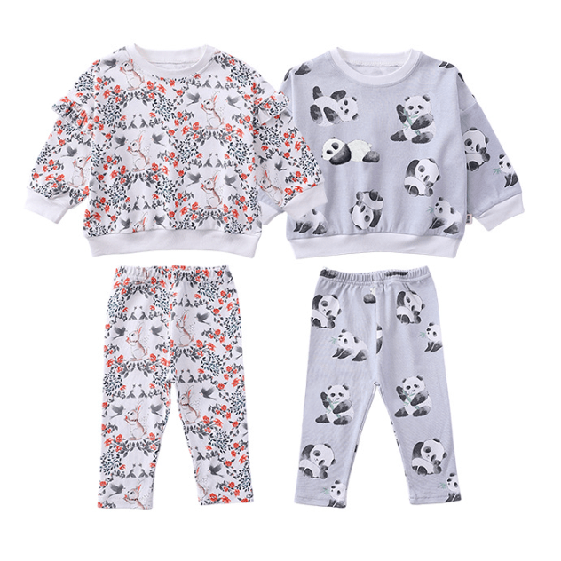 Baby Animal Leaf Flower Sweatsuit 2 Pieces Set