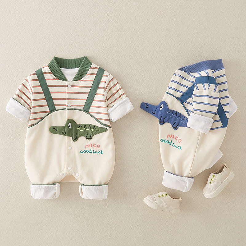 I AM INTO YOU Baby Animal Vertical Stripe Romper
