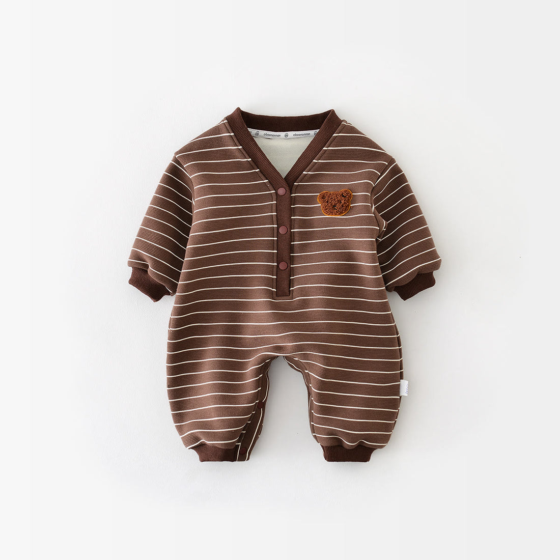 Baby Button Bear Brown Striped Fleece Lined Romper